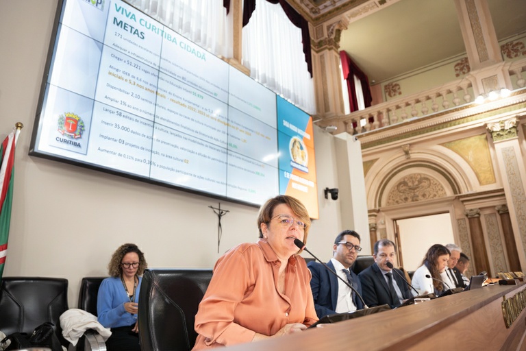 Durante a audiência, Adriane dos Santos apresentou o seguinte panorama das metas para 2025: Viva Curitiba que Não Dorme (49 produtos, 41% concluídos; 14 metas, 93% atendidas), Viva Curitiba Cidadã (101 produtos, 50% concluídos; 20 metas, 55% atendidas), Viva Curitiba Saudável (12 produtos, 50% concluídos; 4 metas, 50% atendidas), Viva Curitiba Tecnológica (34 produtos, 35%; 5 metas, 60% atendidas); Viva Uma Nova Curitiba (106 produtos, 42% concluídos; 38 metas, 53%); Viva Curitiba Mais Ágil (91 produtos, 22% concluídos; 15 metas, 40% atendidas); Viva Curitiba Transparente (23 produtos, 57% concluídos; 6 metas, 50% atendidas).