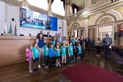 Nesta quarta-feira (10), durante a sessão plenária, estiveram presentes os alunos da Escola Kids Centro Educacional, localizada no Bigorrilho, acompanhados pela secretária municipal de Desenvolvimento Humano (SMDH), Amália Tortato. A escola de educação infantil desenvolve um projeto chamado Exploradores Kids, que incentiva os alunos a participarem de ações solidárias e os leva para conhecer a capital do Paraná. Dentro dessas ações, hoje, os alunos compareceram à CMC para entregar tampinhas PET que farão parte da campanha Tampinha Paraná.