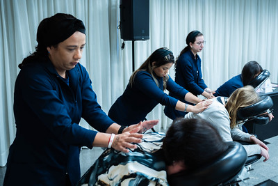 Quick massage no café para as servidoras da CMC
