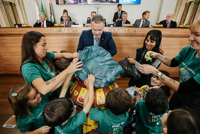 Crianças do Centro Educacional Kids entregam tampinhas na CMC.