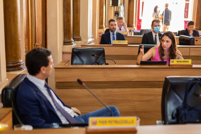 “Precisamos superar a cultura dos monumentos, que ‘embelezam’ a cidade, mas que tiram recursos de outras áreas. Eu tenho visitado escolas e digo que preferia ver esses R$ 100 mil em reformas e convido o vereador Pier a ir comigo [conhecer os problemas estruturais das unidades]”, rebateu a Professora Josete (PT). “Cabe ao Estado homenagear a girafa Pandinha? Queremos que o Estado cuide do básico, da Saúde, da Educação. Por que a gente não submete os parques e praças em parcerias público-privadas?”, disse Amália Tortato (Novo), dentro do debate.
